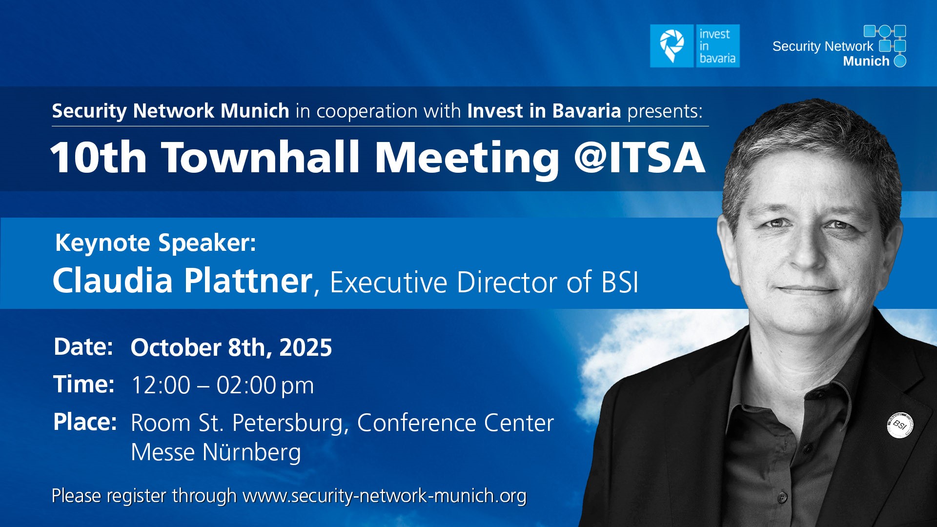 Invest in Bavaria and the Security Network Munich are very pleased to host the 10th edition of the international Town Hall Meeting@it-sa!